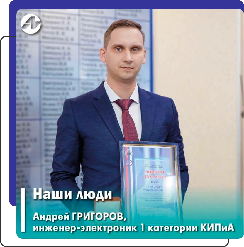 Андрей является автором и соавтором более 50 рационализаторских предложений, направленных на улучшение технических характеристик оборудования, повышения надежности работы техники, удобства в обслуживании и экономии денежных средств АО «Щекиноазот». Андрей Григоров стал лауреатом регионального конкурса в сфере науки и техники «Инженеры года-2022» в номинации «Информатика, информационные сети, вычислительная техника».